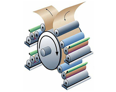 The satellite type printing machine is composed of four color groups around the center, a super large pressure roller structure.