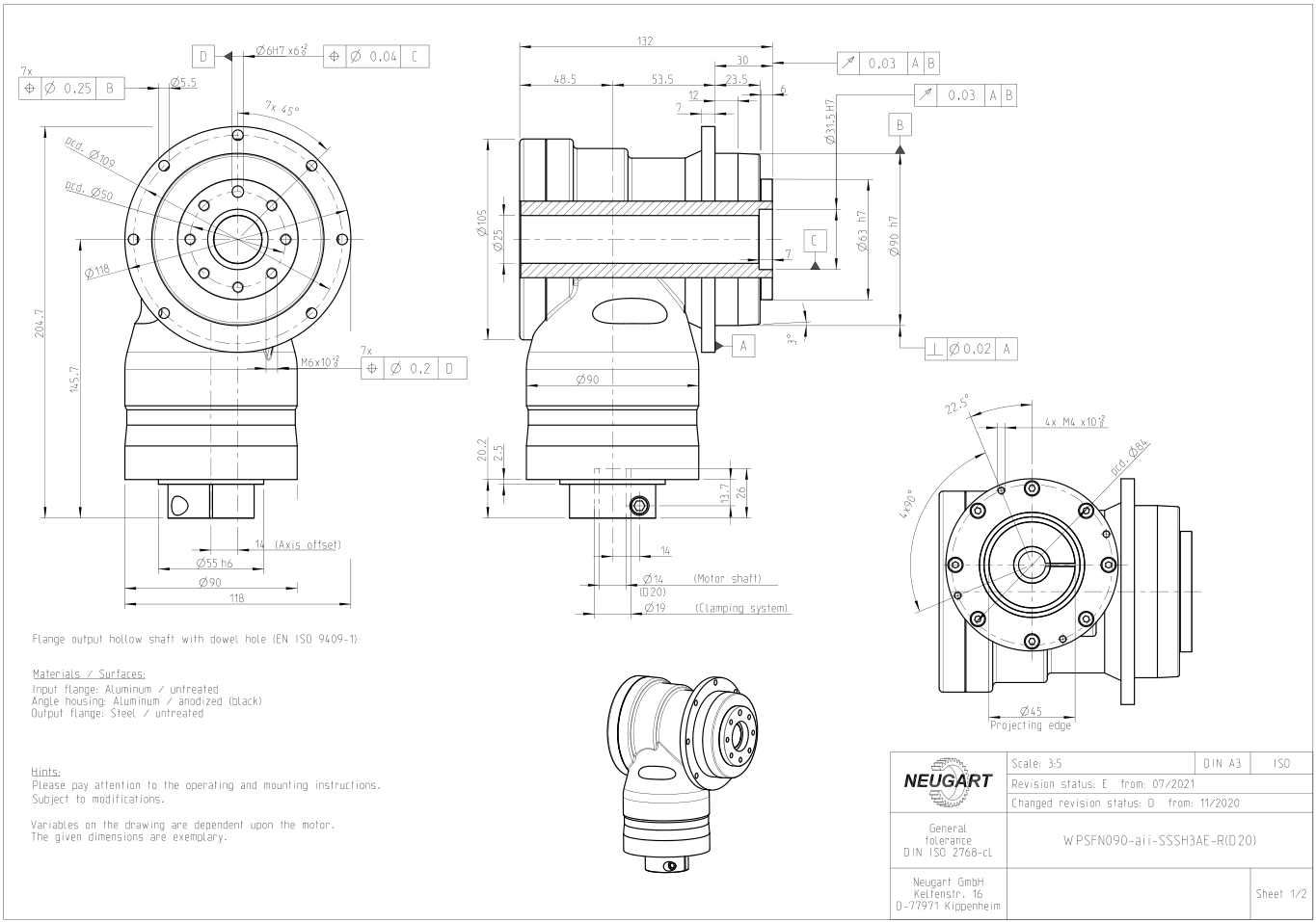 WPSFN是NEUGART一款配有法蘭輸出軸和空心軸的齒輪直角行星減速機(jī),憑借標(biāo)準(zhǔn)化的法蘭接口能夠輕松快速集成到系統(tǒng)中。通過(guò)準(zhǔn)雙曲面齒輪和斜齒行星系統(tǒng)優(yōu)化同步運(yùn)行功能,實(shí)現(xiàn)加工表面的質(zhì)量。轉(zhuǎn)角盤式輸出行星減速機(jī)圖紙下載,全系列減速機(jī)型號(hào)圖紙下載,不同尺寸速比減速機(jī)圖紙聯(lián)系技術(shù)在線下載或提供選型樣本。